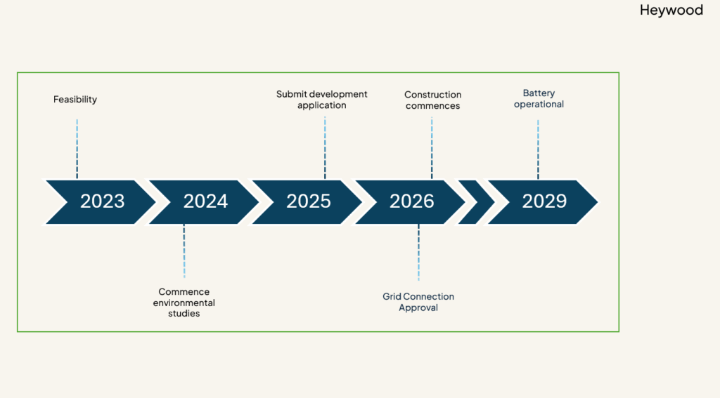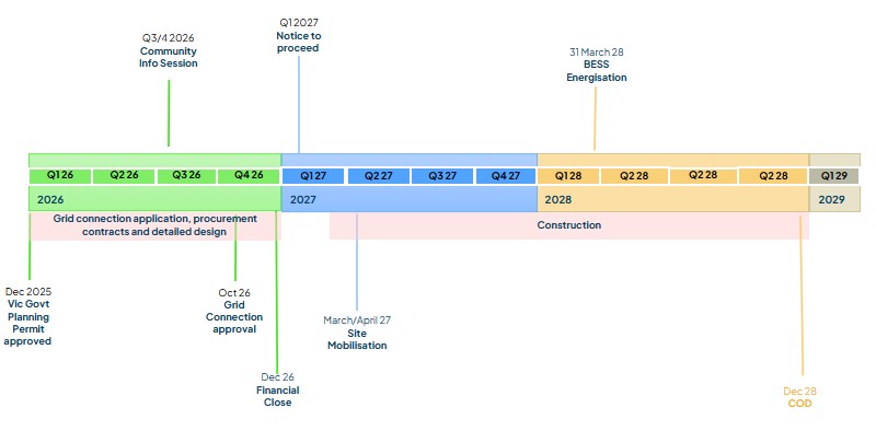 The Project will provide additional storage and stability to the electricity grid, helping to lower wholesale electricity prices. It will support Australia’s energy transition by storing excess energy during periods of overproduction or low demand. When demand surges, these stored resources can be discharged quickly to meet the higher electricity needs, mitigating supply demand imbalances.